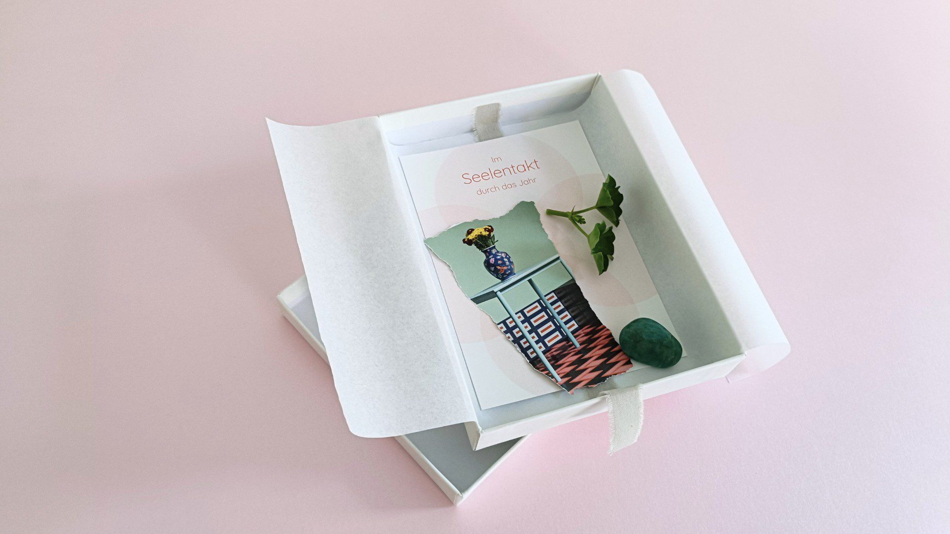 In deiner persönlichen Seelenbox kannst du neben den Seelenimpulsen persönliche Notizen oder Dinge aufbewahren. Vielleicht fällt dir einmal ein besonderes Blatt vor die Füsse oder dir begegnet ein Wort, welches dich im Zusammenhang mit einem Seelenbild besonders berührt – heb es auf, notier es, leg es in die kleine Seelenbox.